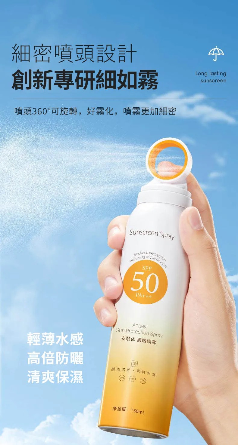 25分鐘前安歌依光圈防曬噴霧,細密噴頭設計 噴頭360°可旋轉自然膚惑,隔離防曬一瓶搞定 - 特大優惠「安歌依光圈防曬噴霧」4入96%用戶的選擇!NT$1198【限時免運】