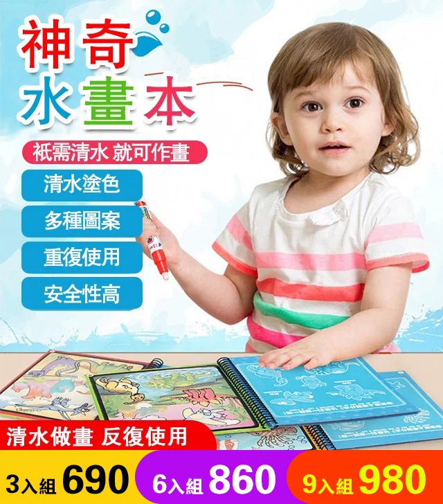 11分鐘前寶寶創意魔法塗鴉水畫本 - 三入組$690(每入230)